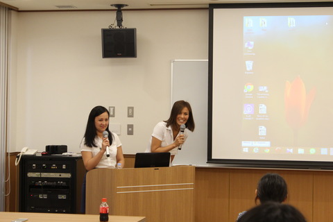 第2回目となる今回は、交流協定を締結しているカザフスタン・セメイ医科大学に関する内容でした。大学院生の短期留学生で、基礎看護学講座と環境保健医学講座にて研修を受けているSharapiyeva AluaさんとBitebayeva Dinaさんが、母国や母校の紹介、日本での生活などについて発表を行い、受け入れ講座の教授やスタッフが優しいまなざしで見守っていました。
