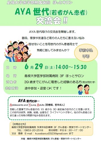 「AYA世代(若者がん患者)交流会!!」を開催します
