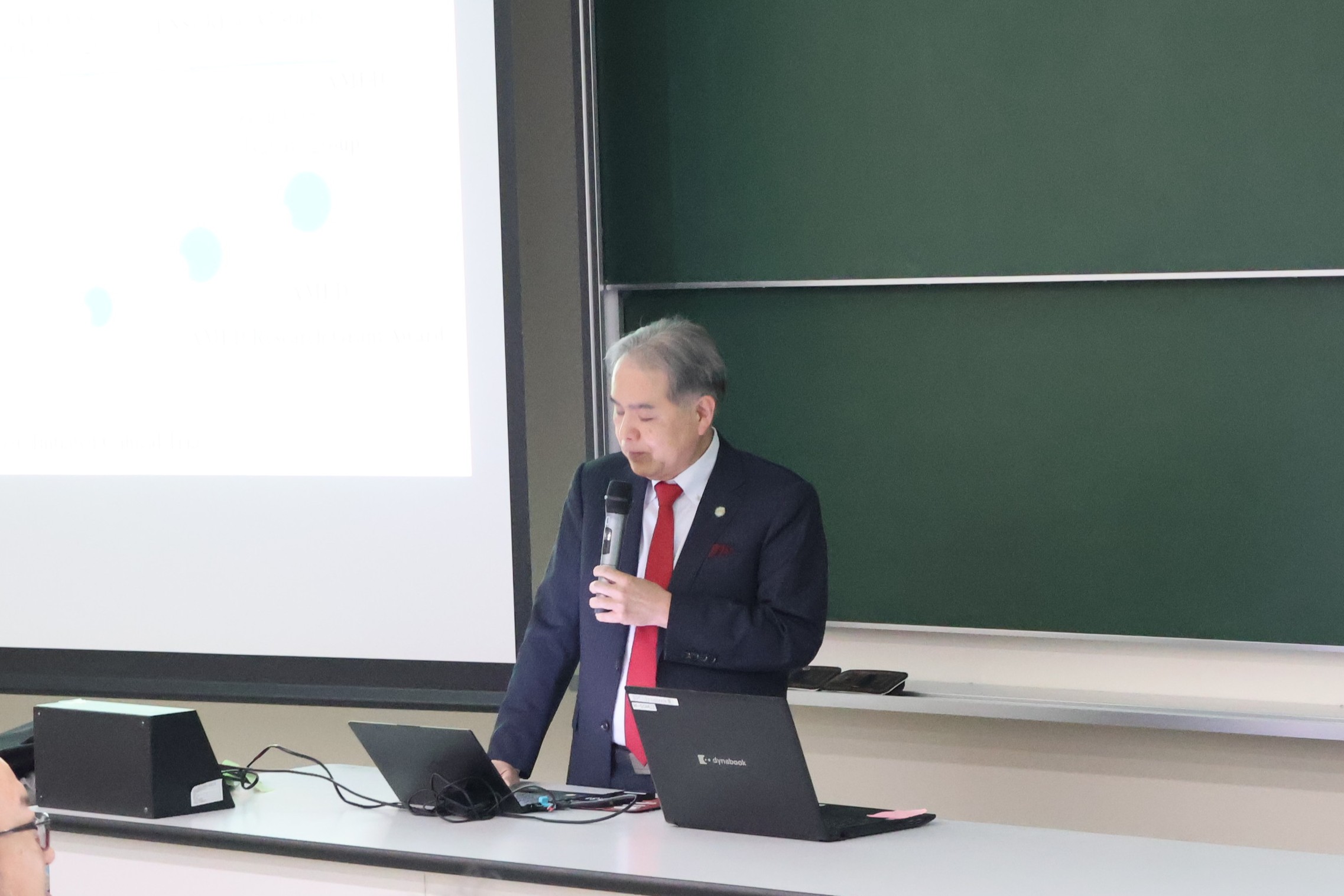 講演では、今年度をもって退任される教授それぞれから、現在に至るまでのご経歴や研究テーマについてご発表いただきました。研究活動のみならず教育にも注力されてきた姿勢や、実験・研究に対する熱意、さらには海外留学の経験やこれまで関わってこられた方々との交流についても紹介があり、参加者は熱心に耳を傾けていました。参加者からは、「各先生方の長年にわたるご功績と情熱が凝縮された素晴らしい講演でした。ご退官という節目に立ち会えたことを光栄に思います。」「退官される教授陣および教室員の歩みや成果の一端を知ることができ、自身のモチベーション向上につながりました。」といった感想が寄せられました。