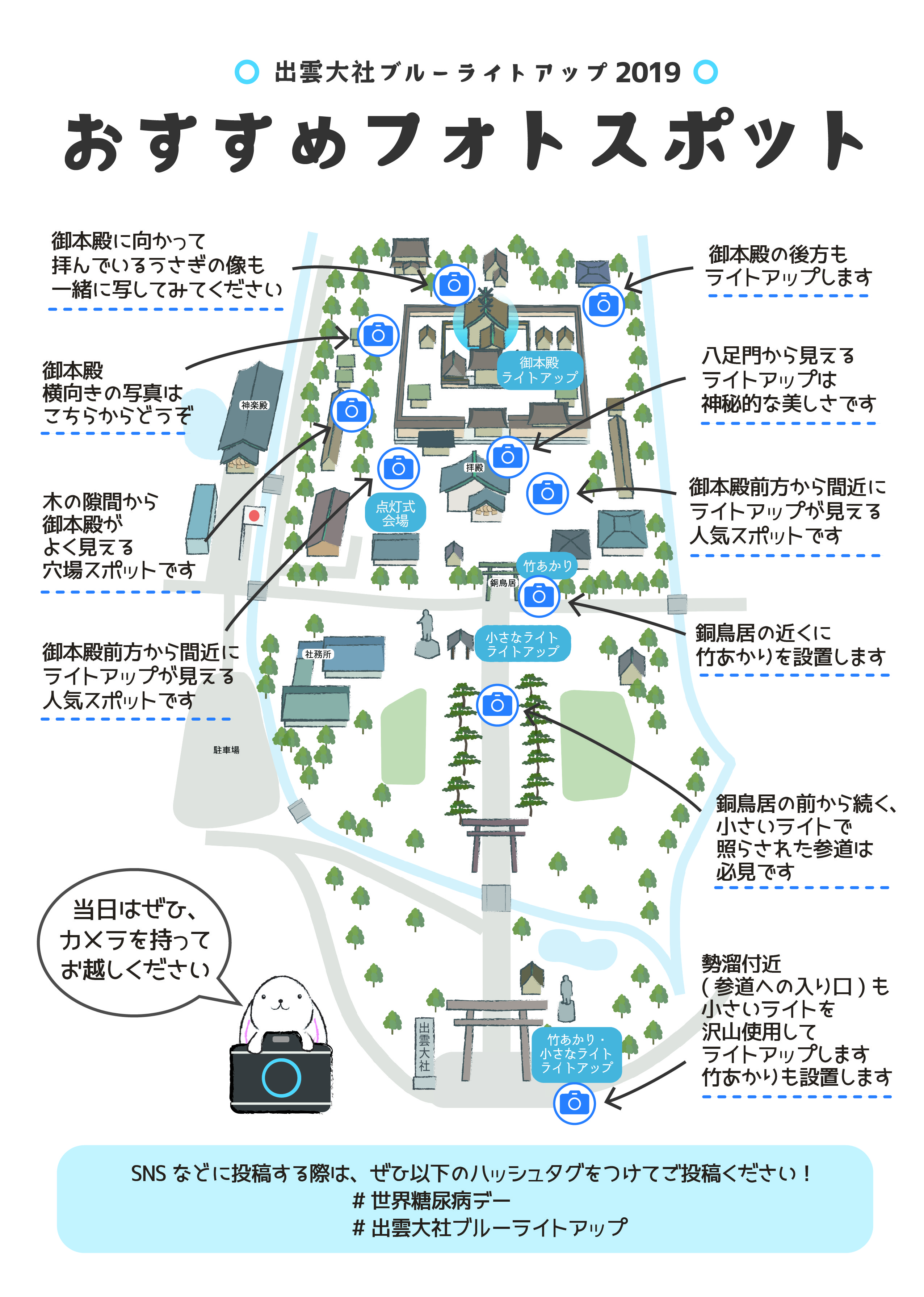 2019年11月3日、第5回「世界糖尿病デー」出雲大社ブルーライトアップを無事開催する事が出来ました。