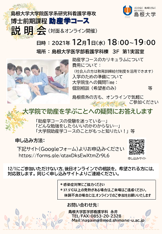 島根大学医学部大学院医学系研究科看護学専攻博士前期課程助産学コース説明会